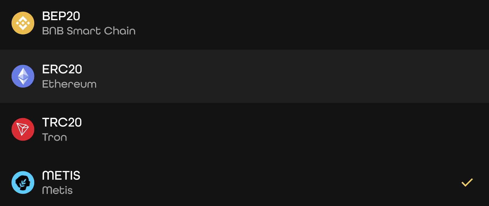 Once inside NuDEX, after claiming testnet tokens, click on ‘Deposit’ at the top of the screen. There you can select the cryptocurrency you want to deposit and the blockchain network you will use, you will find the most used networks in crypto (BEP20, ERC20 TRC20, METIS). It is important that the network chosen on NuDEX matches that of your wallet to avoid errors in the transaction, since an error can cause the funds to be lost.