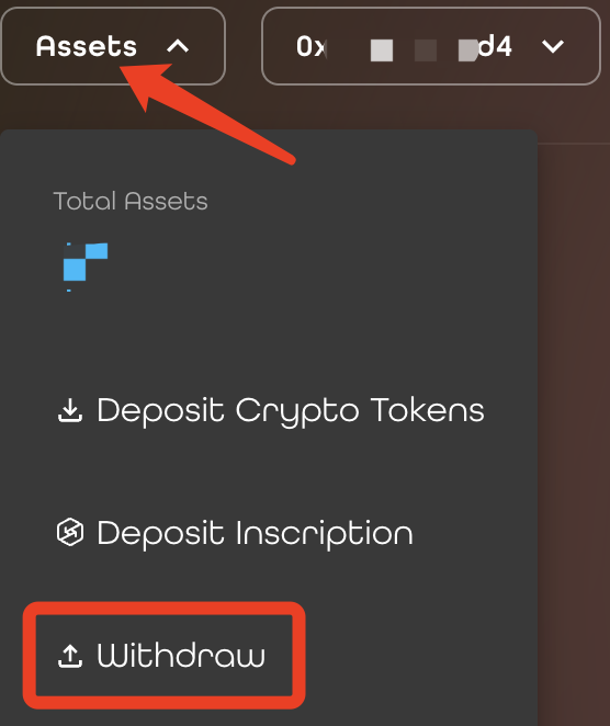 If you need to transfer your earnings from NuDEX to your wallet or another exchange, the process is very simple and fast. After connecting your wallet, click "Assets" in the upper right corner, and select ‘Withdraw’.